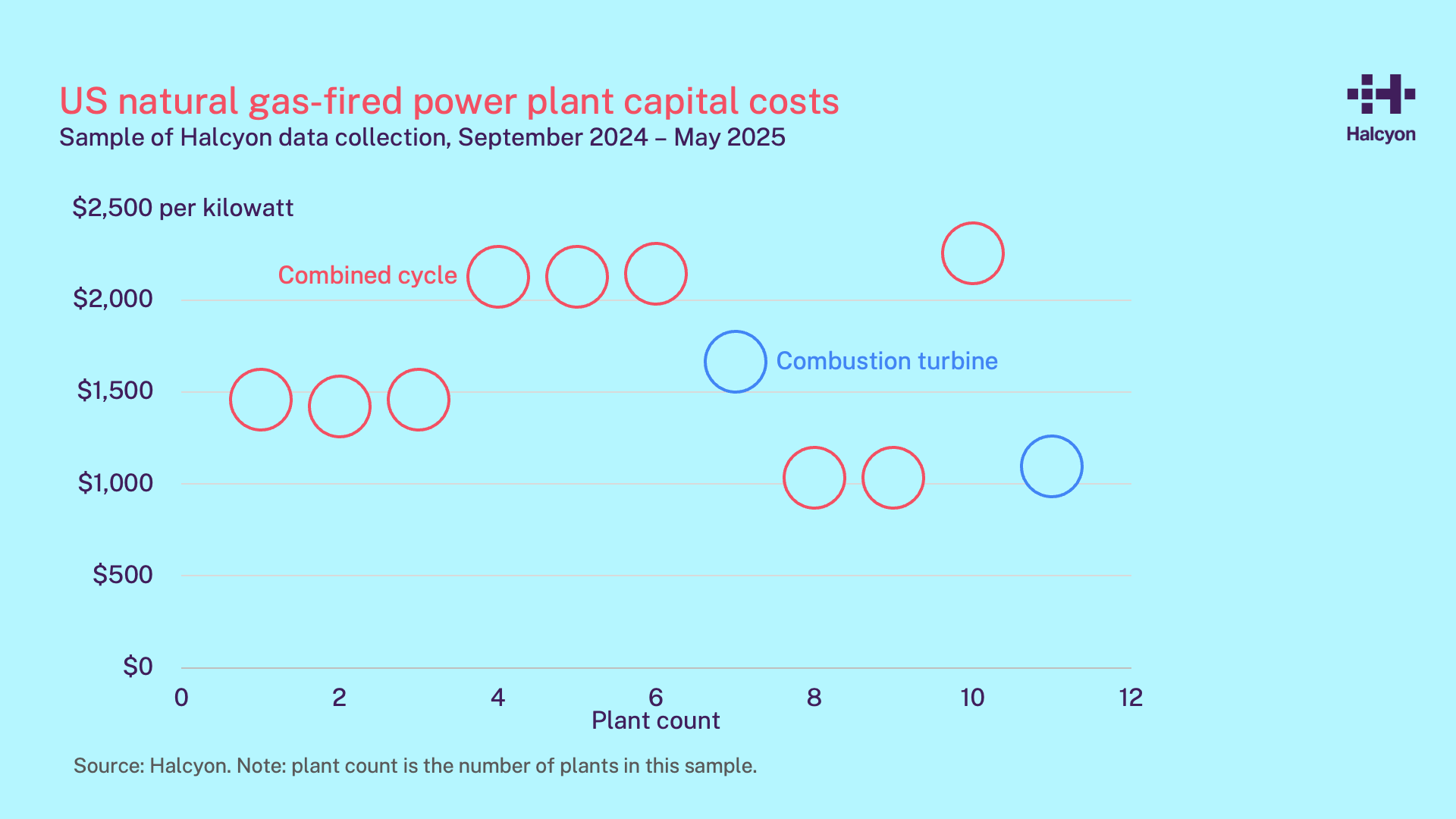We can expect building new assets to cost more than acquiring existing ones, but how much more? Halcyon, a San Francisco-based company building an AI-assisted search and information platform for the energy sector, just announced their latest product, a US gas power plant tracker, which includes insights like the one below, which I found really interesting.